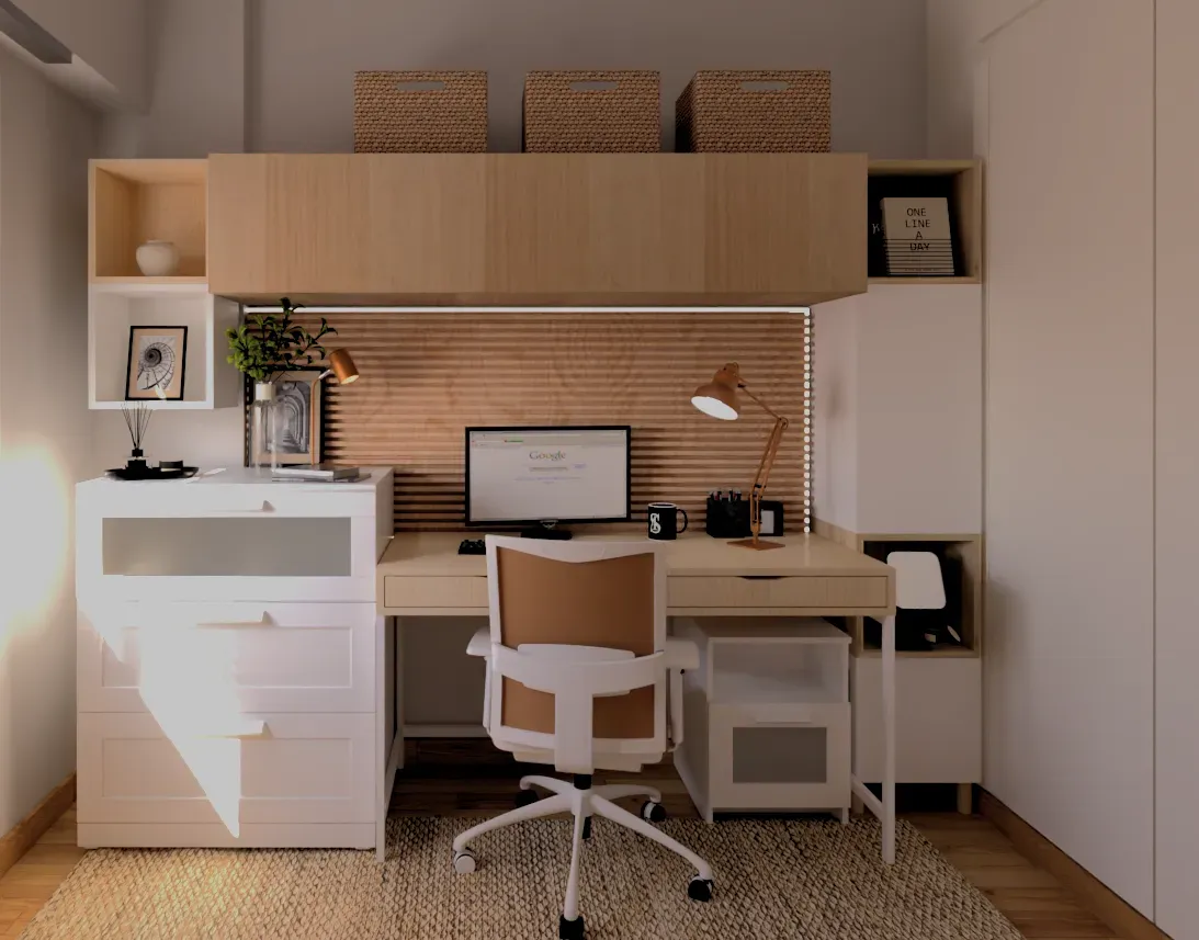 La solución se concibe como un sistema continuo donde cada pieza responde a una lógica común de modulación y alineación. Se prioriza continuidad horizontal para ampliar percepción espacial, control estricto de profundidades y pasos libres, e integración del puesto de estudio como parte estructural del conjunto. La iluminación se incorpora como componente del sistema (posición y alturas), evitando elementos añadidos que comprometan ejecución o mantenimiento.